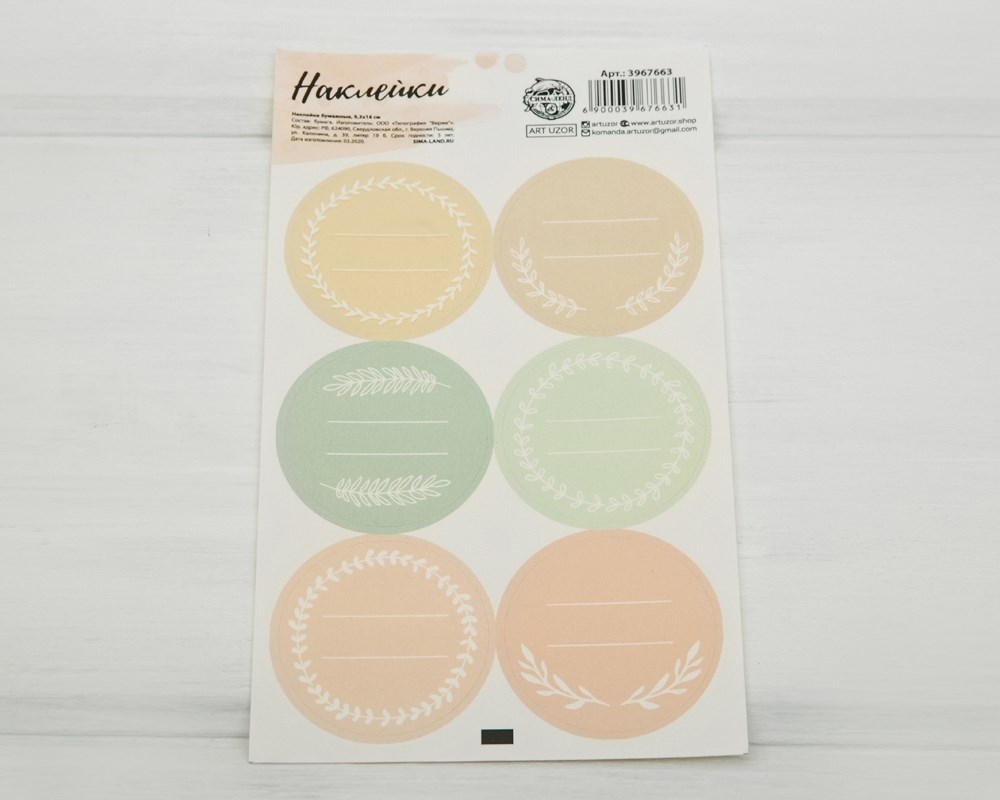 Наклейки, рамочки веточки, круглые, d=4 см, лист 6 шт.