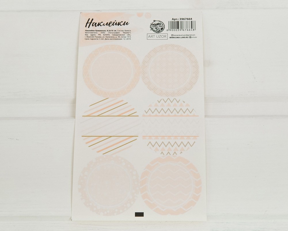 Наклейки, розовый паттерн, круглые, d=4 см, лист 6 шт.