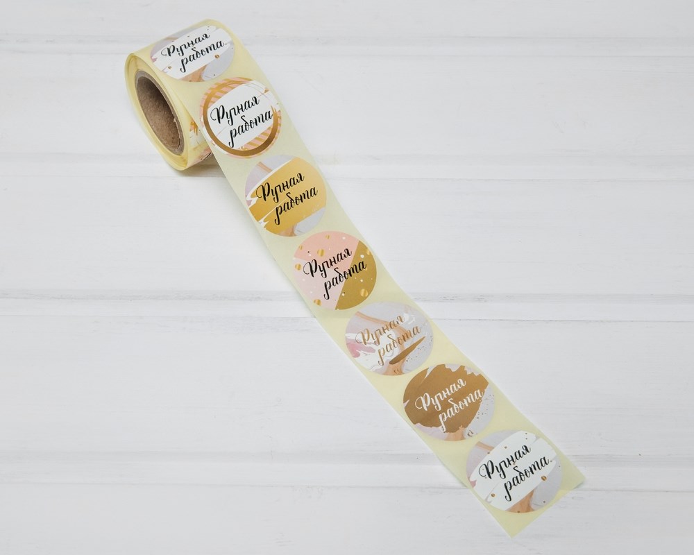 Наклейки «Ручная работа», круглые, d=4,4 см, рулон 250 шт.