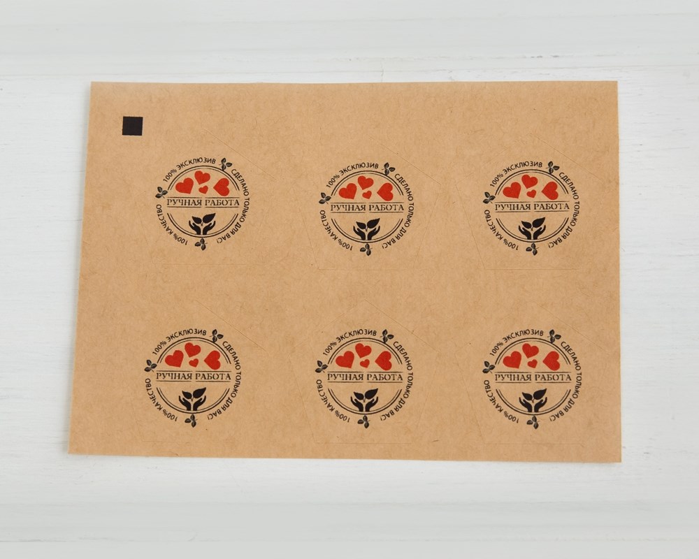 Наклейки «Ручная работа», пятиугольник, 4х4 см, лист 6 шт.