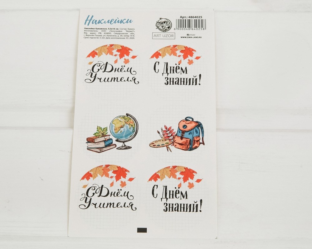 Наклейки «С Днем знаний!», круглые, d=4 см, лист 6 шт.