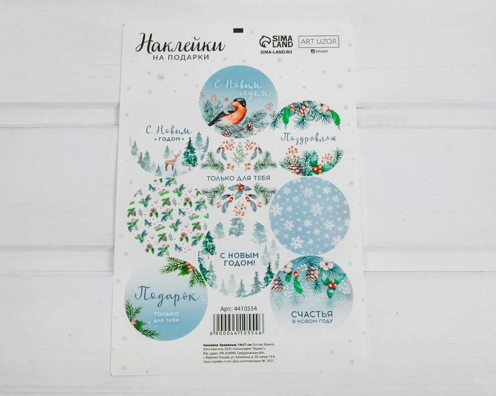 Наклейки «Снежная зима», круглые, d=4 см, лист 9 шт.
