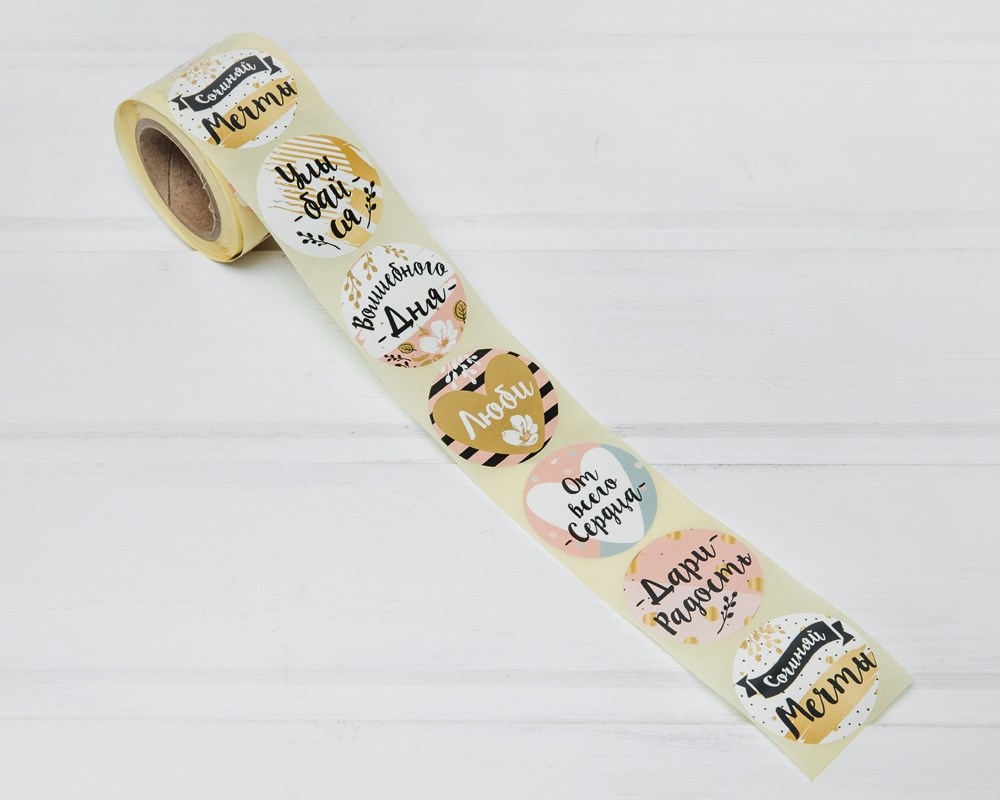 Наклейки «Сочиняй мечты», круглые, d=4,4 см, рулон 250 шт.