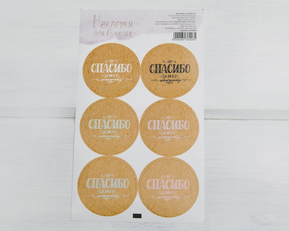 Наклейки «Спасибо за покупку», круглые, d=4 см, лист 6 шт.