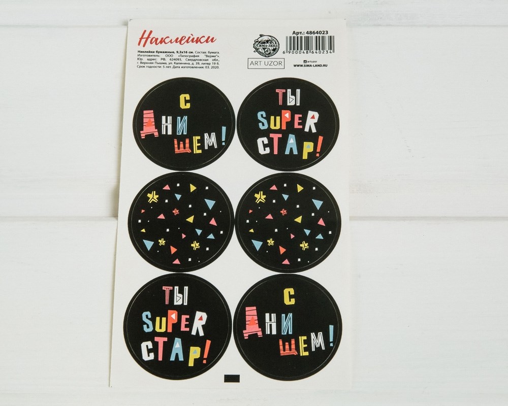 Наклейки «Ты супер стар!», круглые, d=4 см, лист 6 шт.