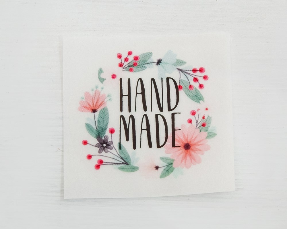 Наклейка «Hand madе», веночек, круглая, d=4 см, матовая пленка, 1 шт.