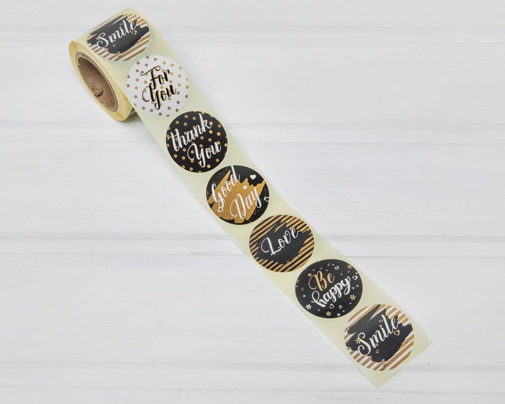 Наклейки «Be happy», круглые, d=4,4 см, рулон 250 шт.