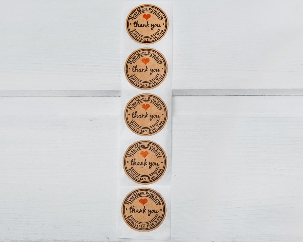 Наклейки «Thank you», круглые, d=2,5 см, крафт, 5 шт.