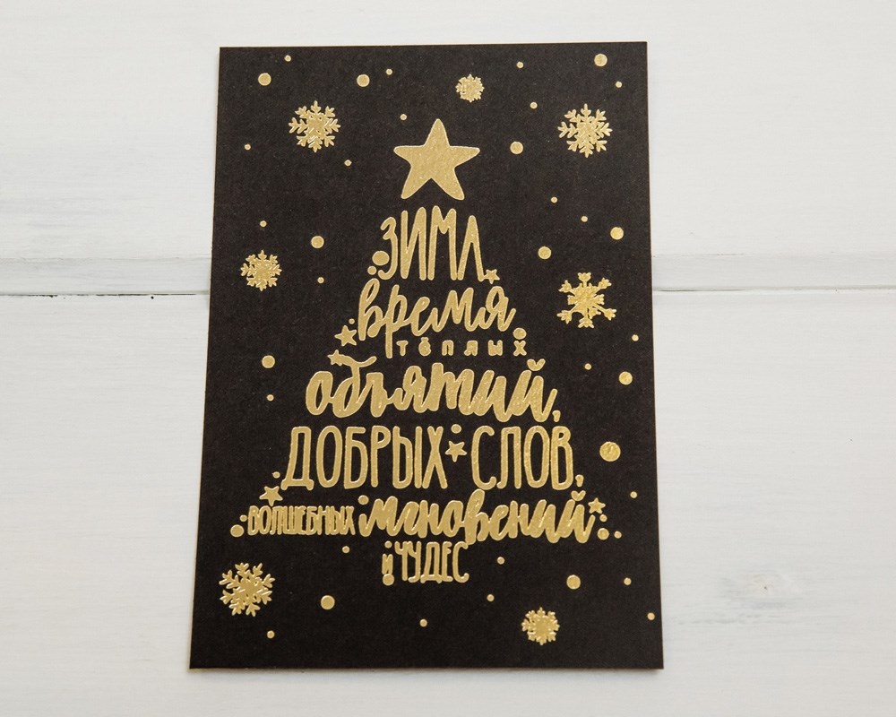 Открытка «Зима время объятий», чёрная, 10х15 см, 1 шт.