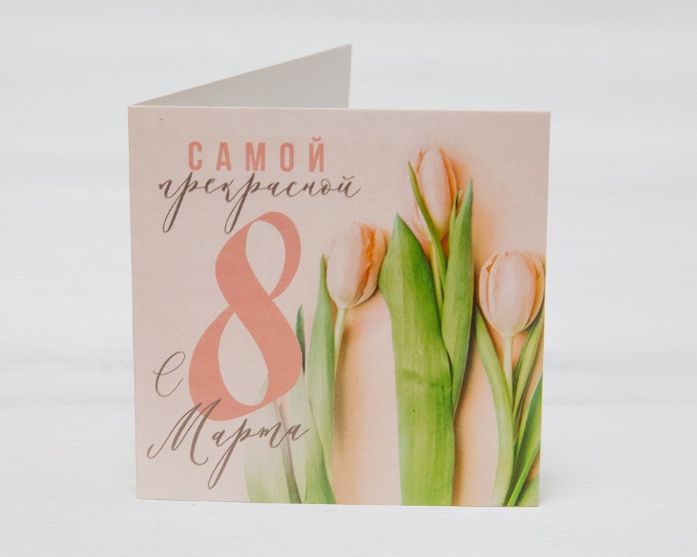 Открытка «С 8 марта», тюльпаны, 7х7 см, 1 шт.