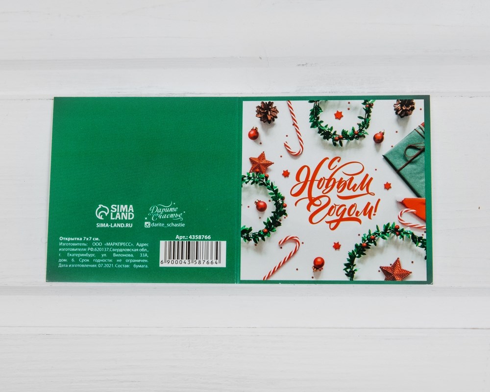 Открытка «С Новым годом!», украшения, 7х7 см, 1 шт.