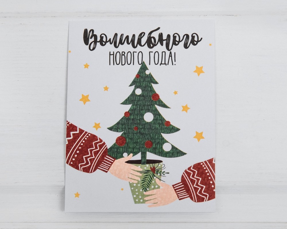 Открытка «Волшебного Нового Года» на акварельном картоне, 8х6 см, 1 шт.