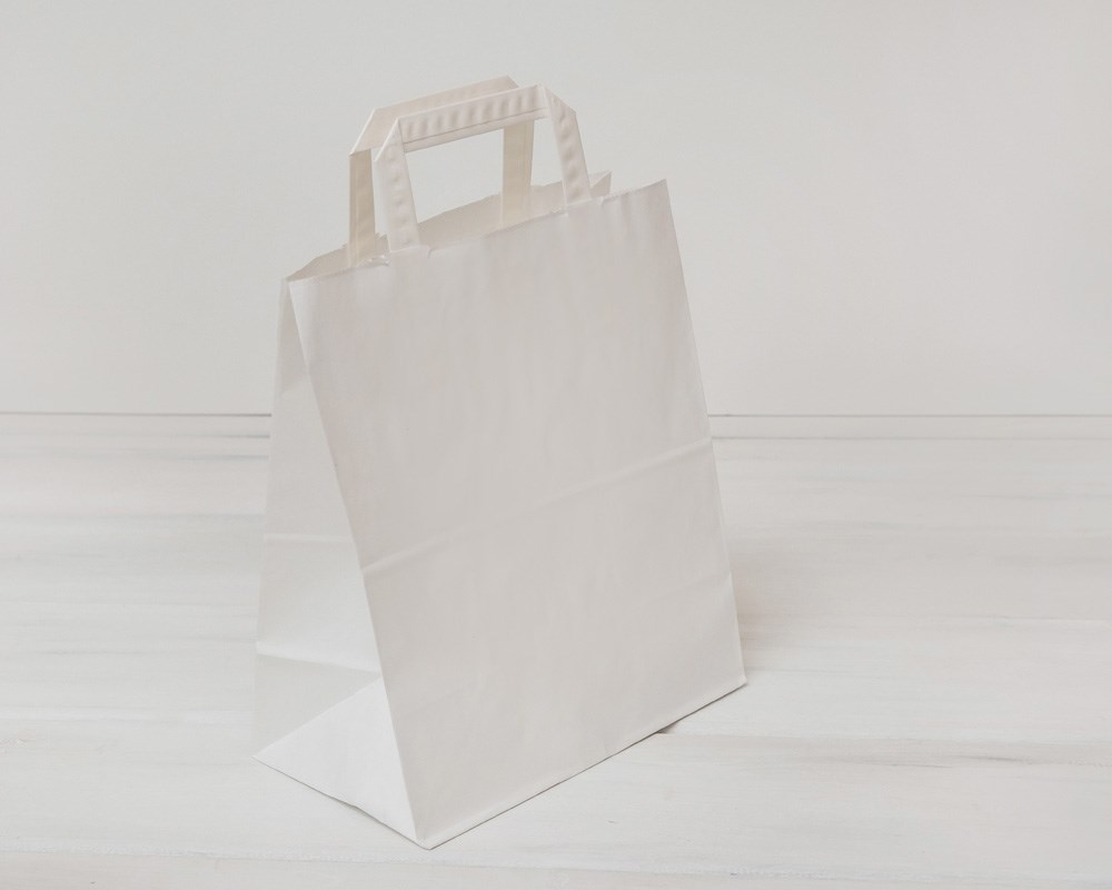 Пакет бумажный, 28х24х14 см, с плоскими ручками, белый