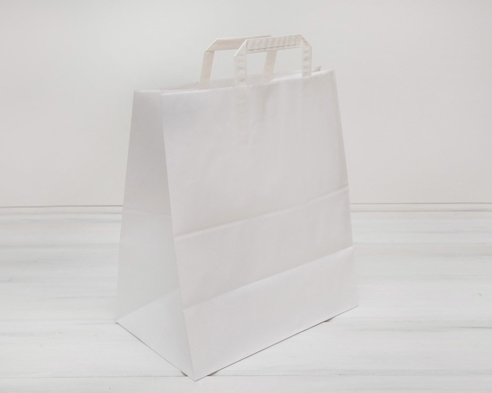Пакет бумажный, 37х32х20 см, с плоскими ручками, белый