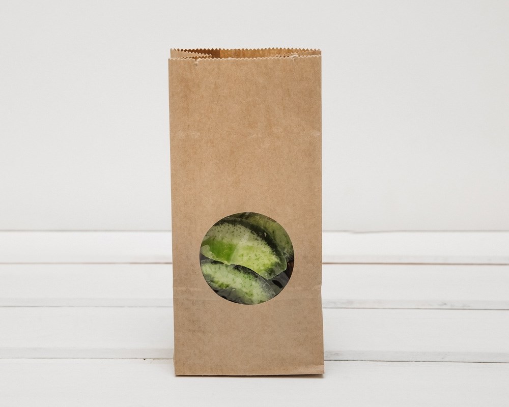 Пакет бумажный с окошком, 25х12х8 см, коричневый