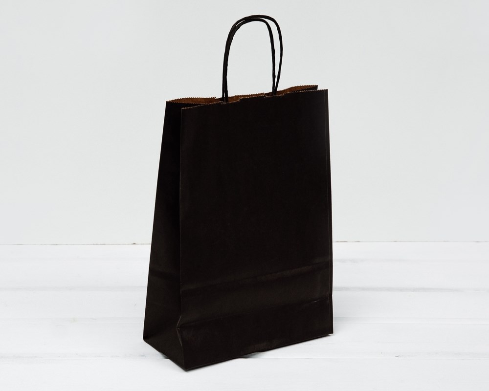 Пакет бумажный, 25х18х8 см, с кручеными ручками, черный