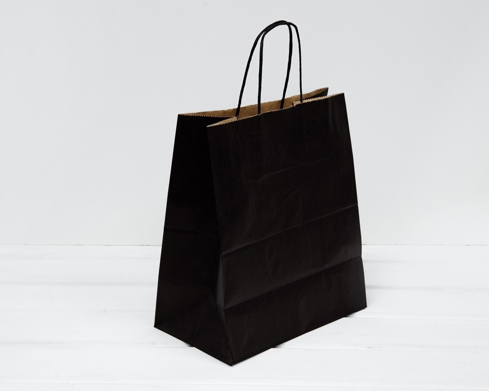 Пакет бумажный, 28х24х14 см, с кручеными ручками, черный