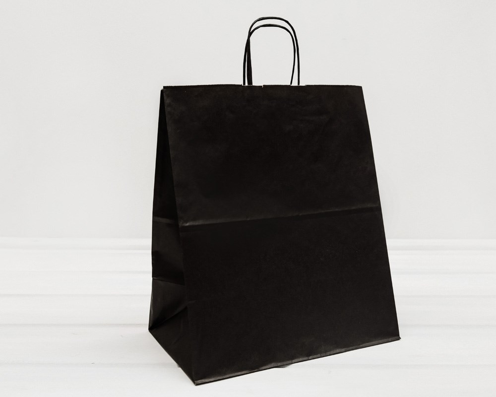 Пакет бумажный, 37х32х19 см, с кручеными ручками, черный