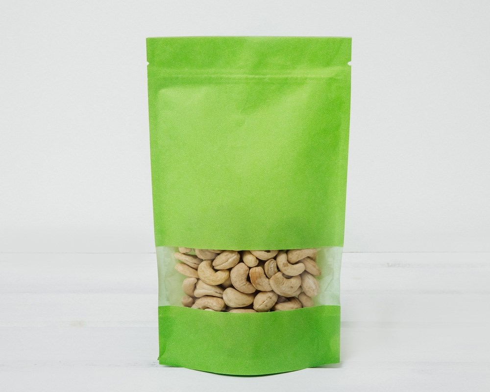 Пакет Дой-пак с zip-lock и окошком бумажный, 22,5х13,5х3,5 см, окно 4 см, зеленый
