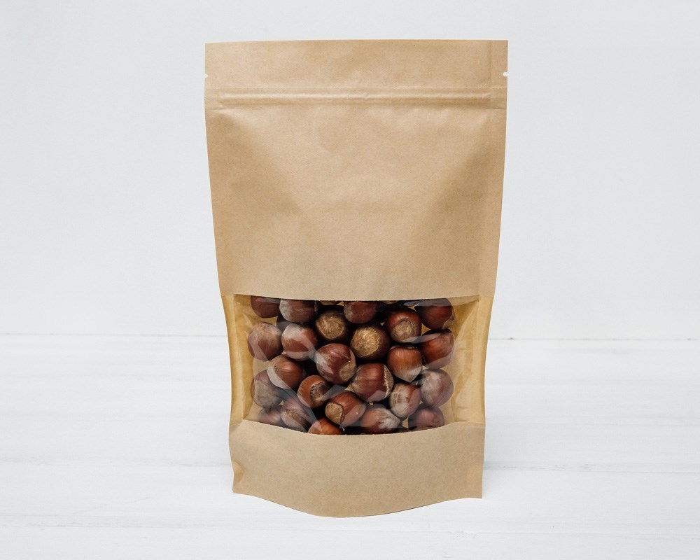 Пакет Дой-пак с zip-lock и окошком, 24х15х4 см, окно 7 см, светлый крафт