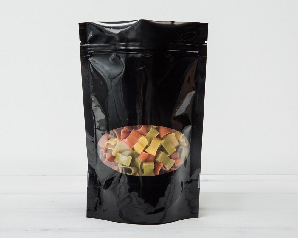 Пакет Дой-пак с zip-lock и овальным окошком, 20х13,5х4 см, черный
