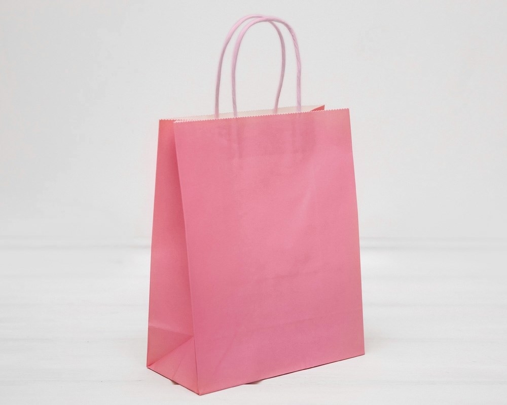Пакет подарочный, 19х15х7,5 см, с кручеными ручками, розовый