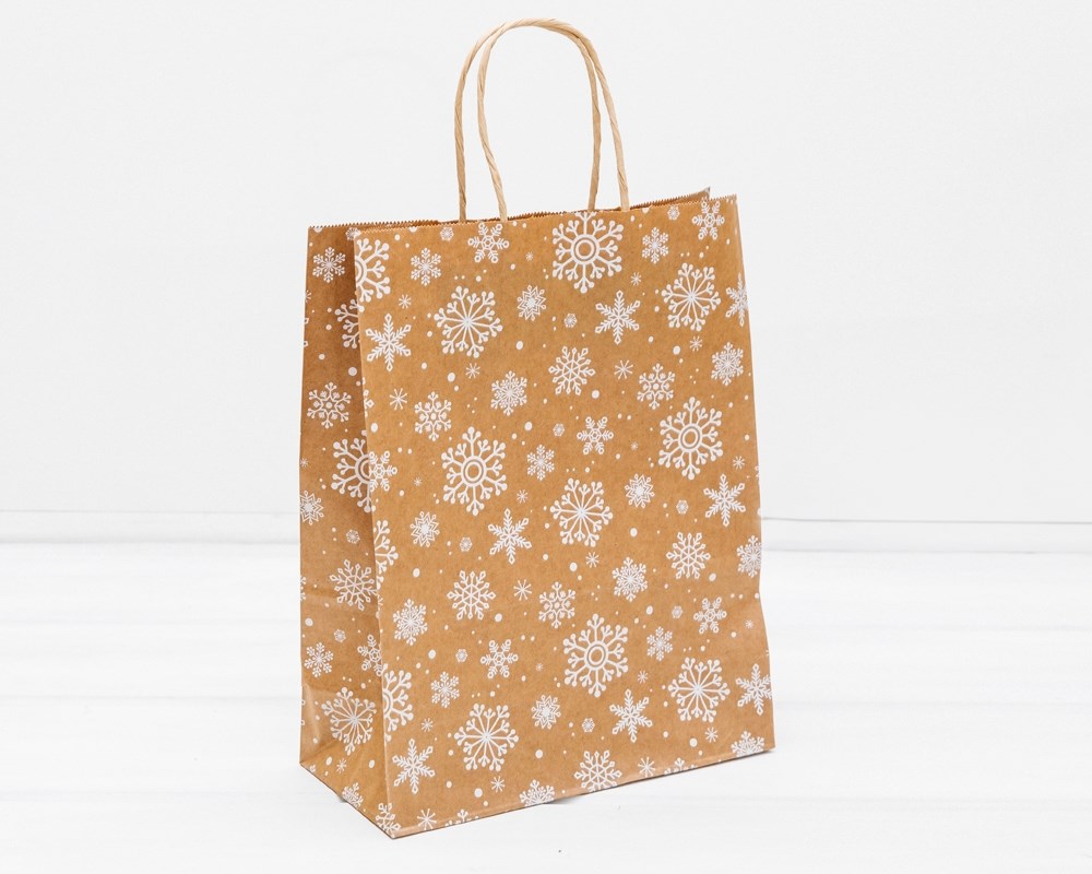 Пакет подарочный «Снежинка», 32х25х11 см, с кручеными ручками, крафт