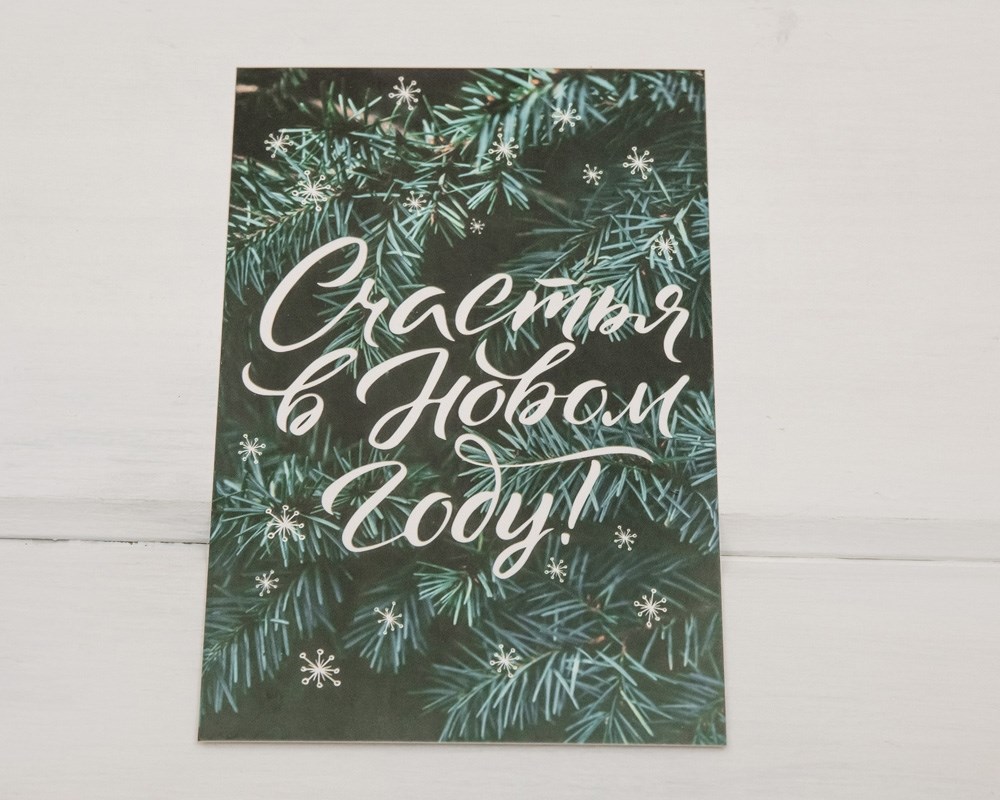 Почтовая карточка «Счастья в Новом году!», еловые веточки, 10х15 см, 1 шт.