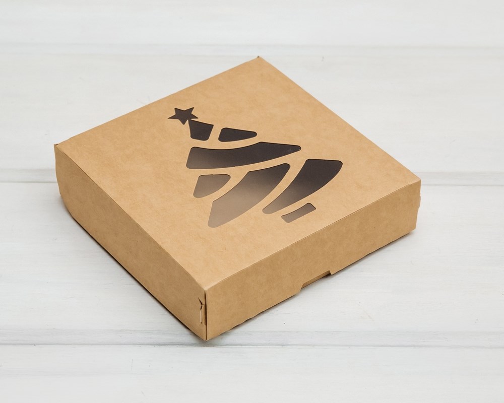 Материал: экологичный крафт картон с внутренней ламинацией. Прозрачное окно является продолжением ламинированной пленки, поэтому не имеет клеевых швов.
