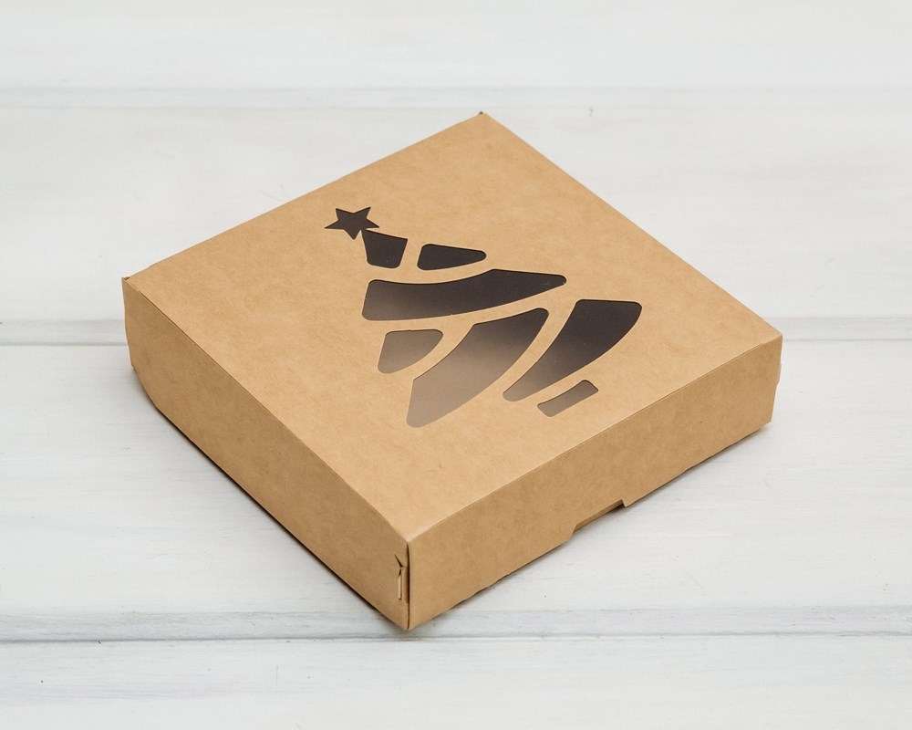 Материал: экологичный крафт картон с внутренней ламинацией. Прозрачное окно является продолжением ламинированной пленки, поэтому не имеет клеевых швов.