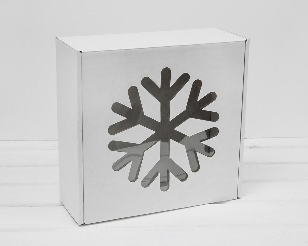 Подарочная новогодняя коробка с окошком «Снежинка», 25х25х10 см, белая