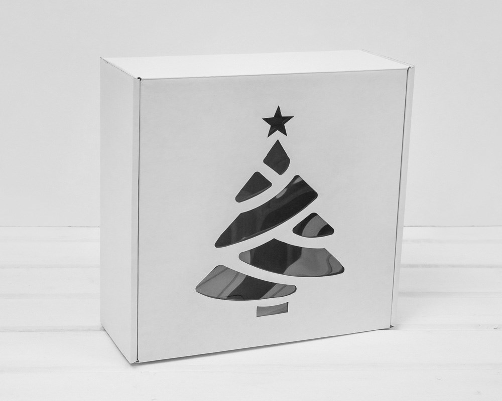 Подарочная новогодняя коробка с окошком «Ёлочка», 25х25х10 см, белая