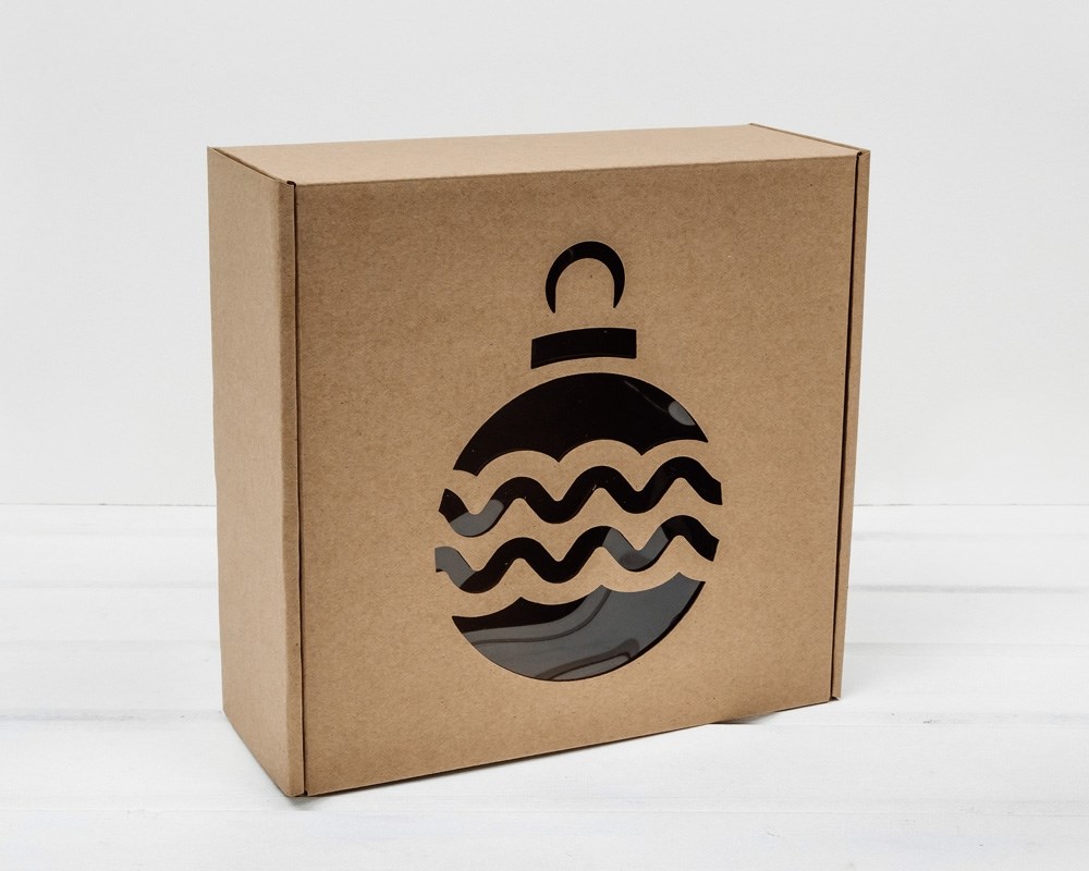 Подарочная новогодняя коробка с окошком «Ёлочный шар», 25х25х10 см, крафт