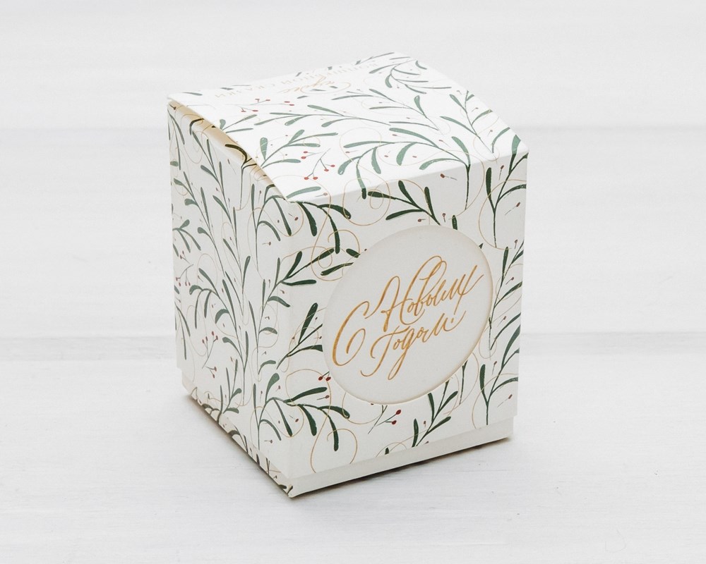 Подарочная новогодняя коробка «Веточки», 6х6х7,5 см, крышка-дно