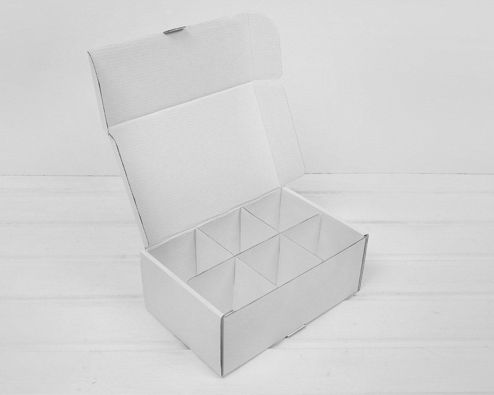 Комплект поставки: коробка, разделители. На одну коробку в комплекте идут 2 разделителя (делят коробку на 6 ячеек).