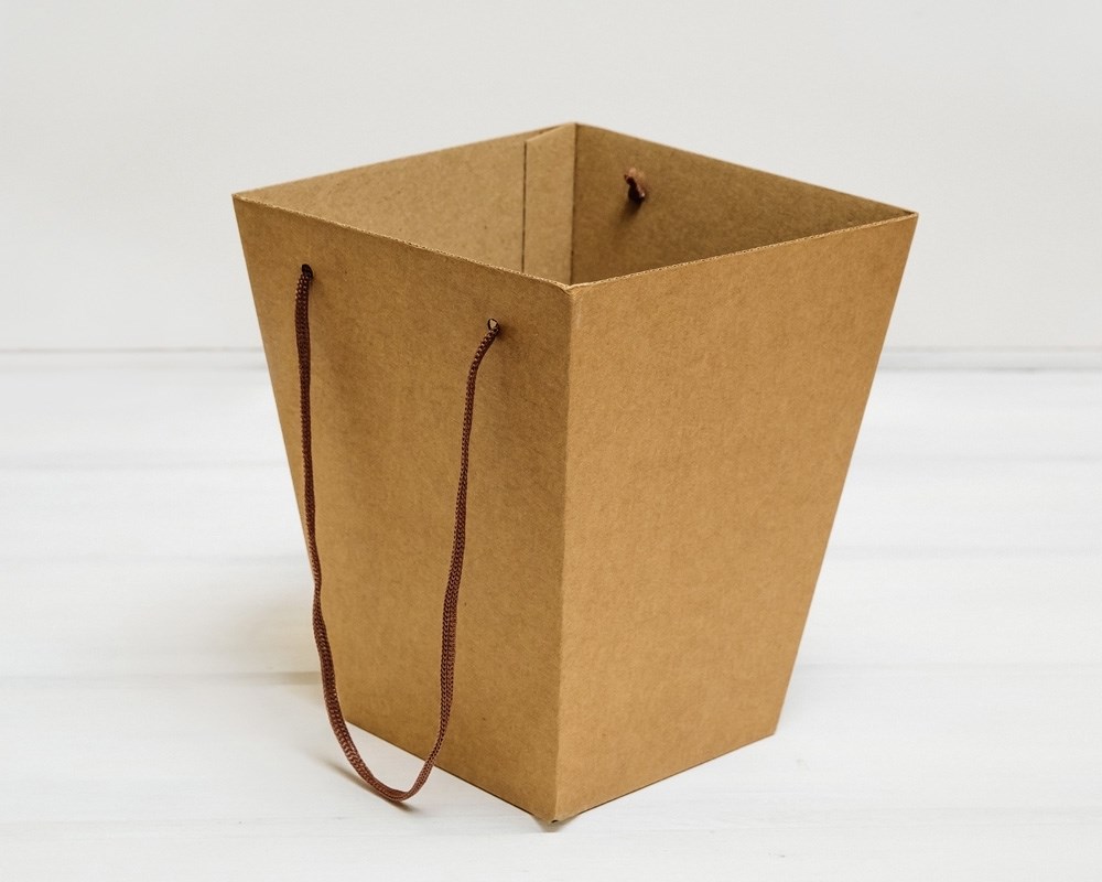 УЦЕНКА Коробка для цветов малая трапециевидная, низ 12,5 см, верх 18 см, высота 22 см, крафт
