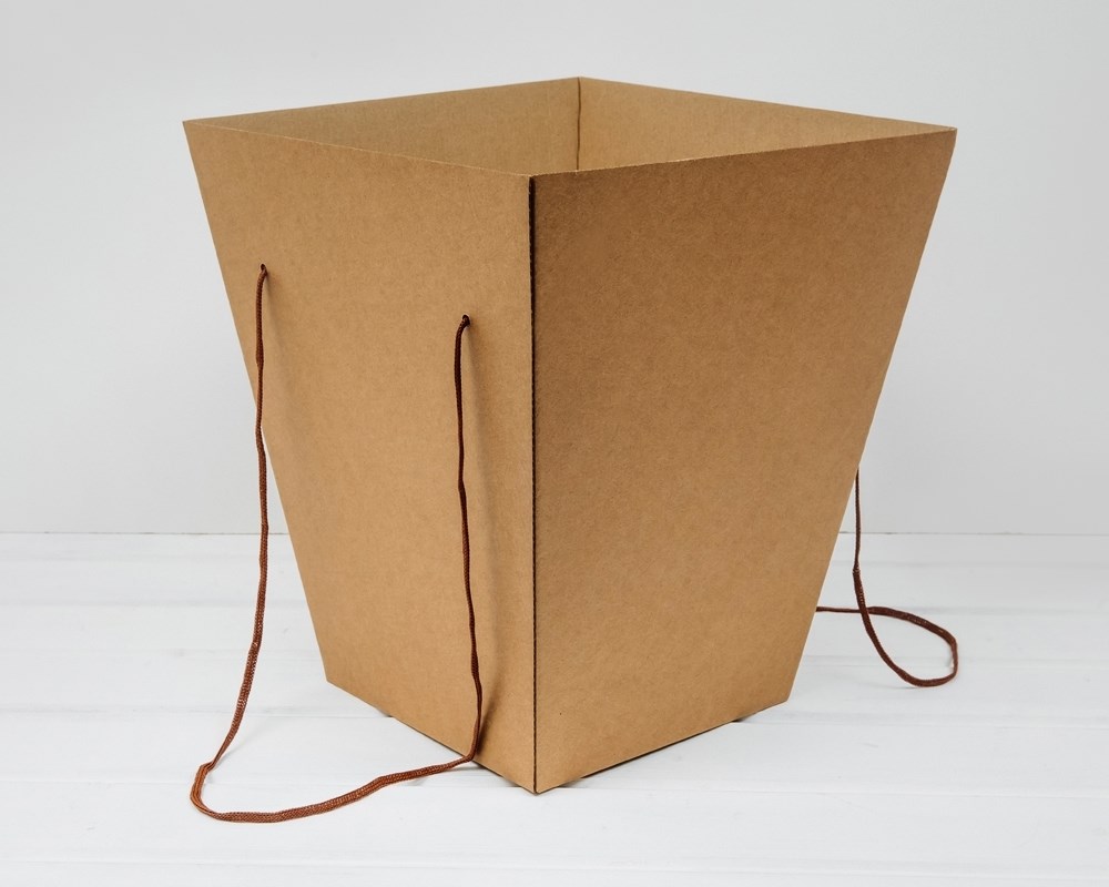 УЦЕНКА Коробка для цветов трапециевидная, низ 20 см, верх 30 см, высота 35 см, БЕЗ КРЫШКИ, крафт