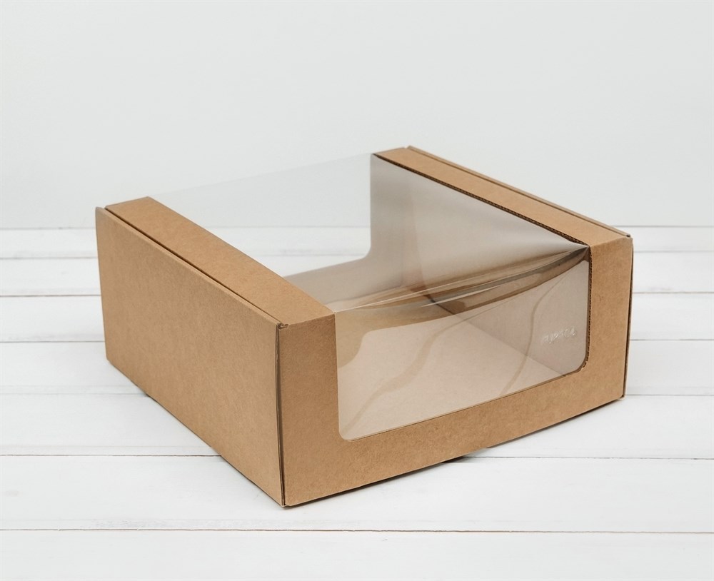 УЦЕНКА Коробка из плотного картона, 24х24х11 см, с круговым окном, крафт