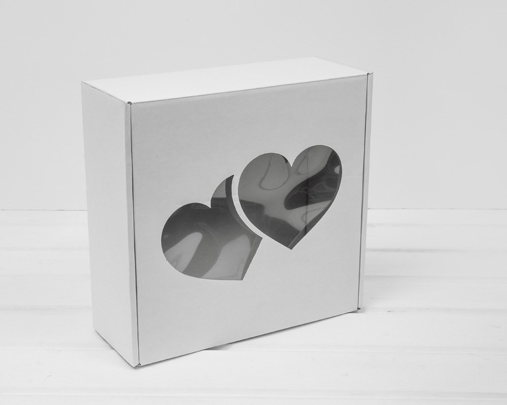 УЦЕНКА Коробка подарочная с окошком «Два сердца», 25х25х10 см, белая