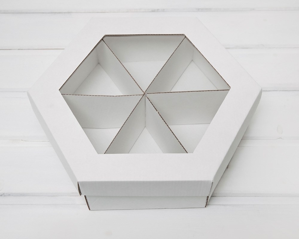 УЦЕНКА Коробка шестигранная с окошком, 29х25х8 см, крышка-дно, белая