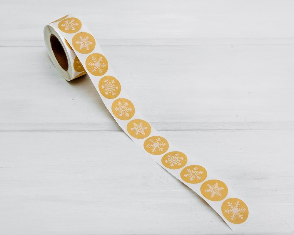УЦЕНКА Наклейки крафт в рулоне «Снежинки», 500 шт, 2,5х2,5 см