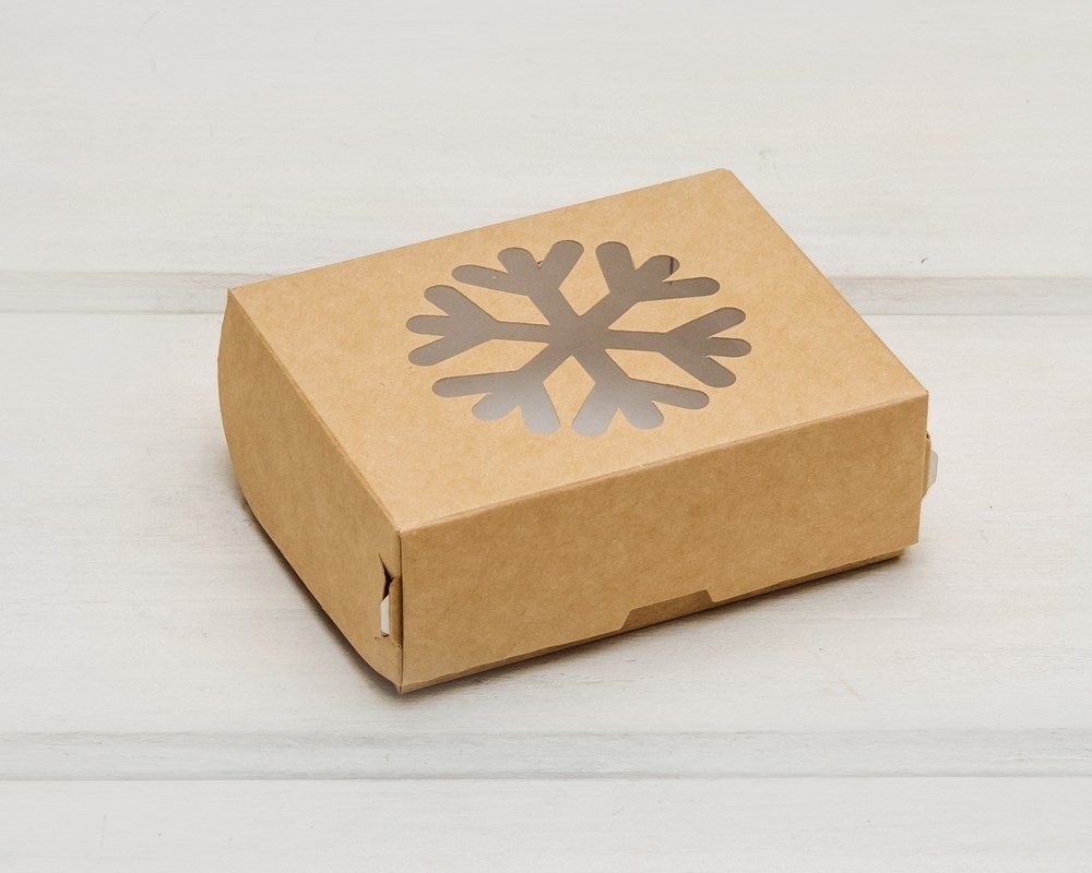 Материал: экологичный крафт картон с внутренней ламинацией. Прозрачное окно является продолжением ламинированной пленки, поэтому не имеет клеевых швов.